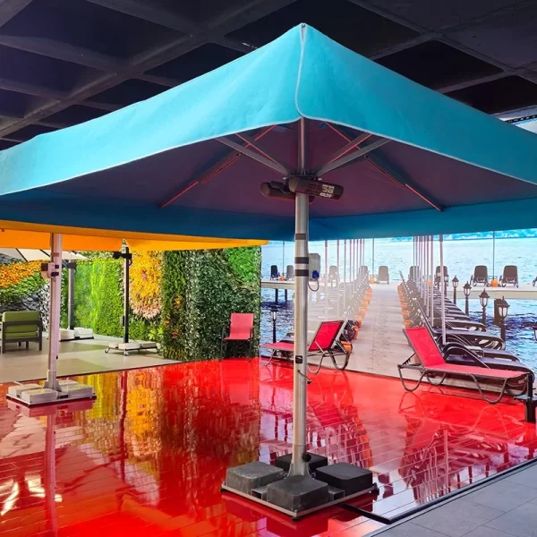Heated umbrella models vary to adapt to all kinds of outdoor needs. Heated telescopic umbrellas can be easily adapted to different areas with their expandable and adjustable structures, ideal for large terraces and gardens. Wall-mounted models are options that take up less space and provide a constant heat source, suitable for narrow spaces. Portable Heated Umbrellas are lightweight and mobile, easy to handle and transport, ideal for temporary events and use in different locations. Each model has its own advantages and uses, so it is important to consider the characteristics of your space and your needs when choosing.